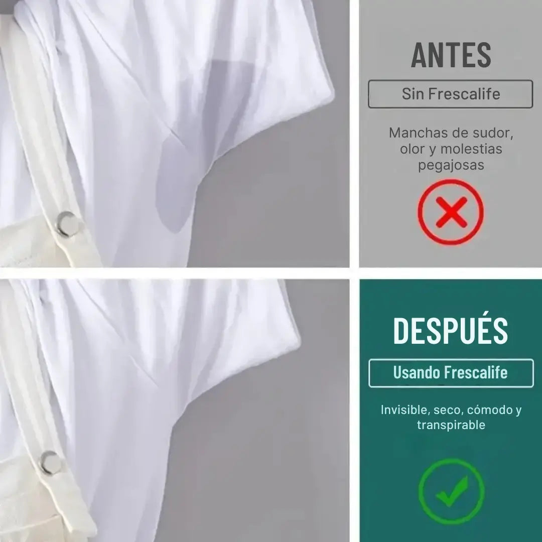 ¡Dile adiós al sudor y las manchas con FrescaLife! Protección total, discreta y efectiva.