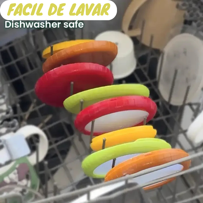 Tienen un diseño innovador de silicona que se estira para adaptarse perfectamente a las frutas y verduras cortadas. Este ajuste crea un sello hermético que conserva la frescura y elimina los olores, manteniendo tus alimentos frescos por más tiempo y tu refrigerador libre de malos olores.