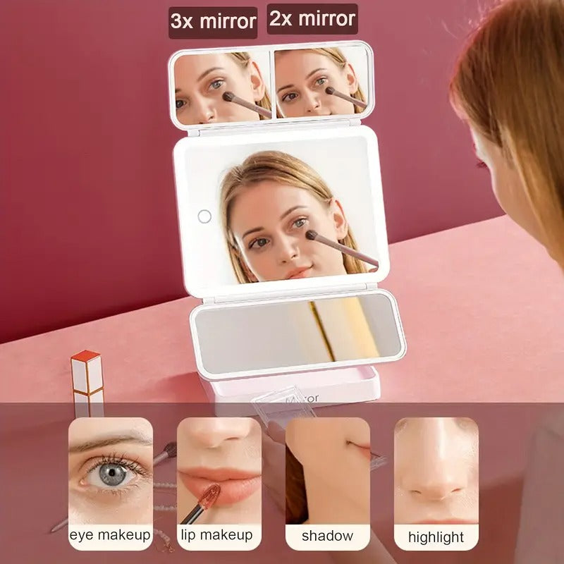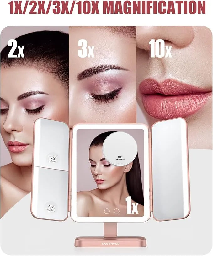 "Espejo LED HD Trifold Luxe: Ilumina tu Belleza con Elegancia"