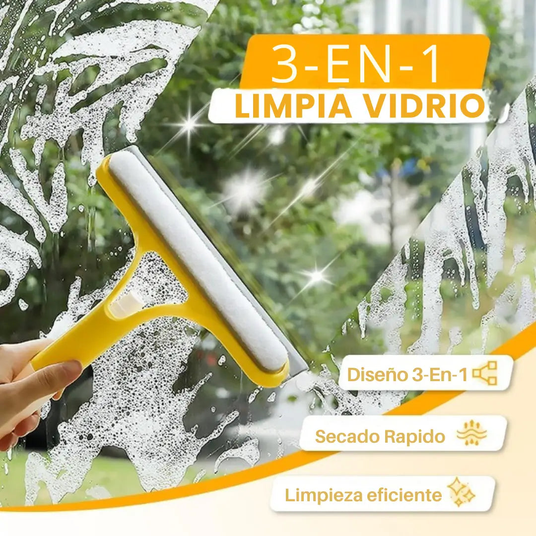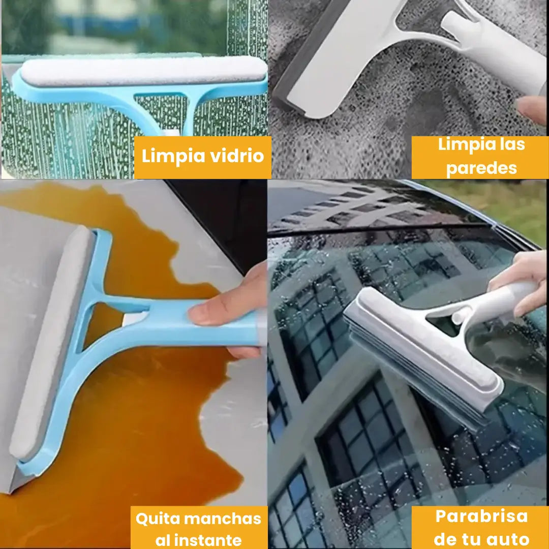 Limpiador de vidrios todo en uno, con rociador, fregador y escobilla de goma