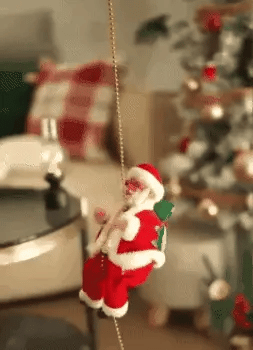 ¡Imagina a Santa Claus subiendo por la cuerda mientras suena "Jingle Bells"! Su brillante traje rojo y su saco de regalos convierten este adorno en una pieza única y alegre que captará todas las miradas.