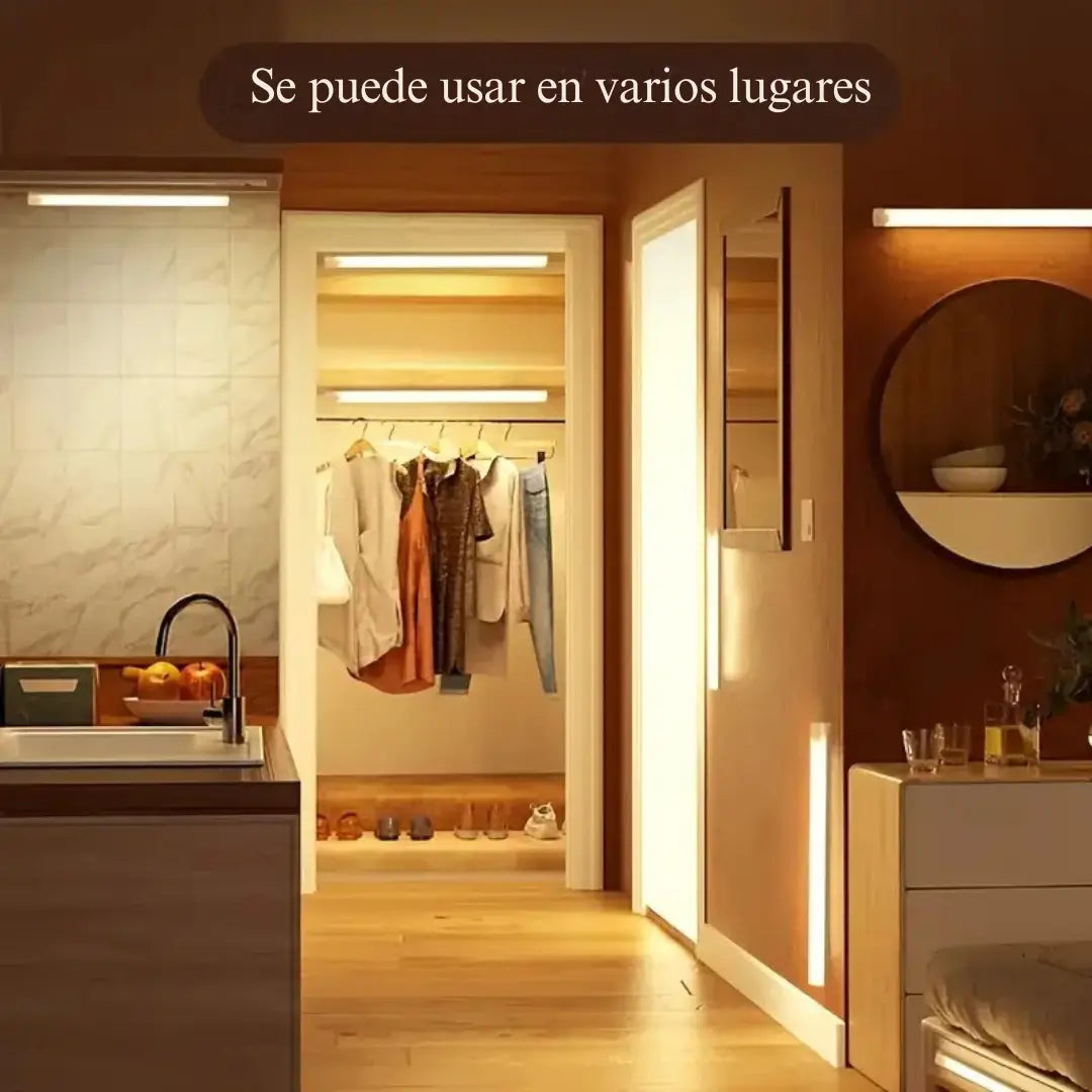 Descubre las luces LED recargables con sensor de movimiento: modernas, eficientes y seguras. Se encienden solo cuando las necesitas, eliminando el consumo innecesario de energía y olvidándote de los interruptores.